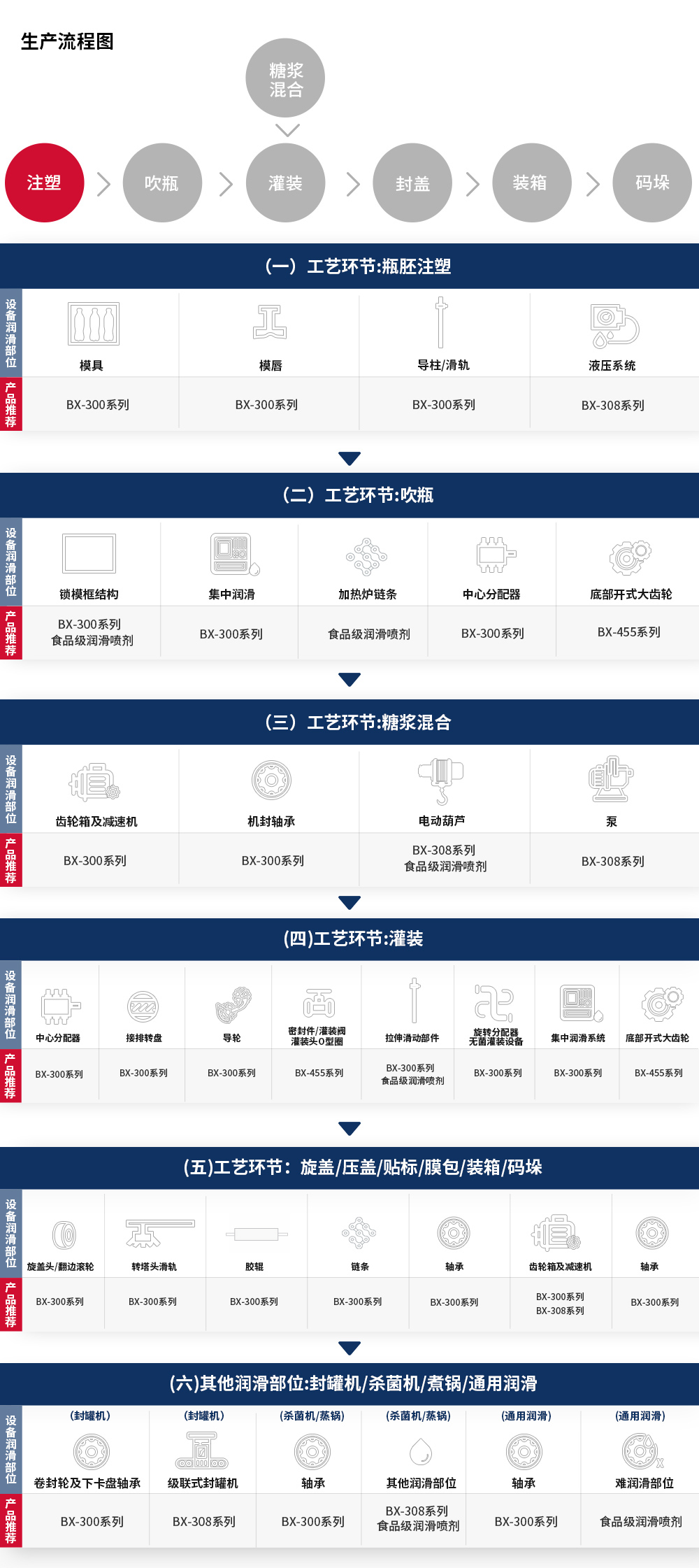 飲用水,飲料,功能性飲料等飲品,無論您的生產(chǎn)線上是那種飲品,寶星食品級潤滑產(chǎn)品都可以幫助你優(yōu)化設(shè)備運行的可靠性,節(jié)約能源
