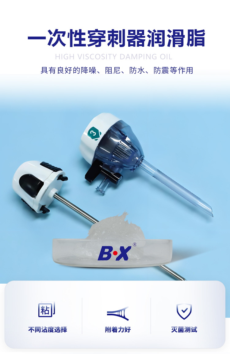 一次性穿刺器潤滑脂是為聚有機硅氧烷的二次加工產(chǎn)品,安全無毒,具有很高的生理安全性、優(yōu)良的耐熱性、抗氧化性和電氣絕緣性能,在溫度變化時,其稠度變化較小,溫度對其體積電阻率影響也極小。對鐵、鋼、鋁、銅及其合金沒有腐蝕性,對許多材 料(如塑料、橡膠、木材、玻璃和金屬)具有良好的降噪、阻尼、防水、防震等作用。