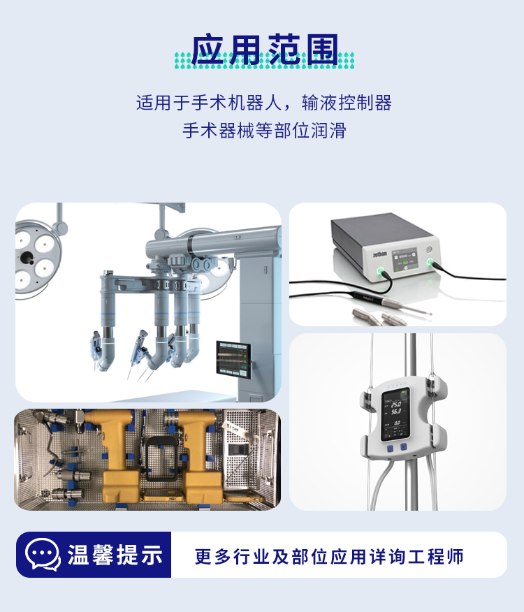 手術機器人潤滑油是一種液態的潤滑劑,易于涂抹,溶劑揮發后可在工件表面形成潤滑薄膜,從而起到潤滑, 降低接觸面摩擦產生噪音和 磨損的功效。